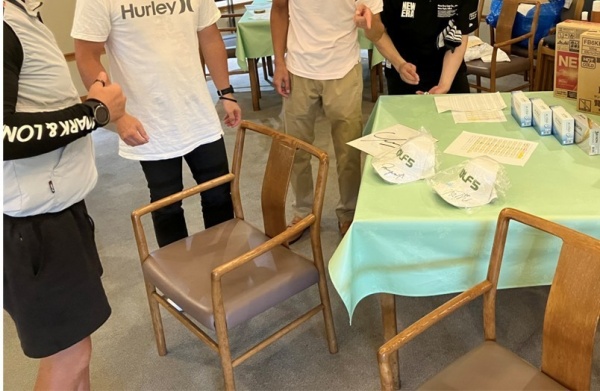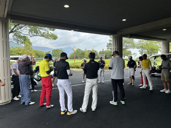 幹事によるルール説明。 当日は不安定な空模様で、時々通り雨に遭遇するといった一日でした。 ビギナーもいましたが、通り雨が止んだ後に差した晴れ間が作る高温多湿な環境は少々つらかったかもしれません。表彰式にて。 このご時世ありがたいお米やよく失くす人には助かるゴルフボール、仕事のお供缶コーヒー等、さらには有名選手のサイングッズなど豪華な景品が並びます。